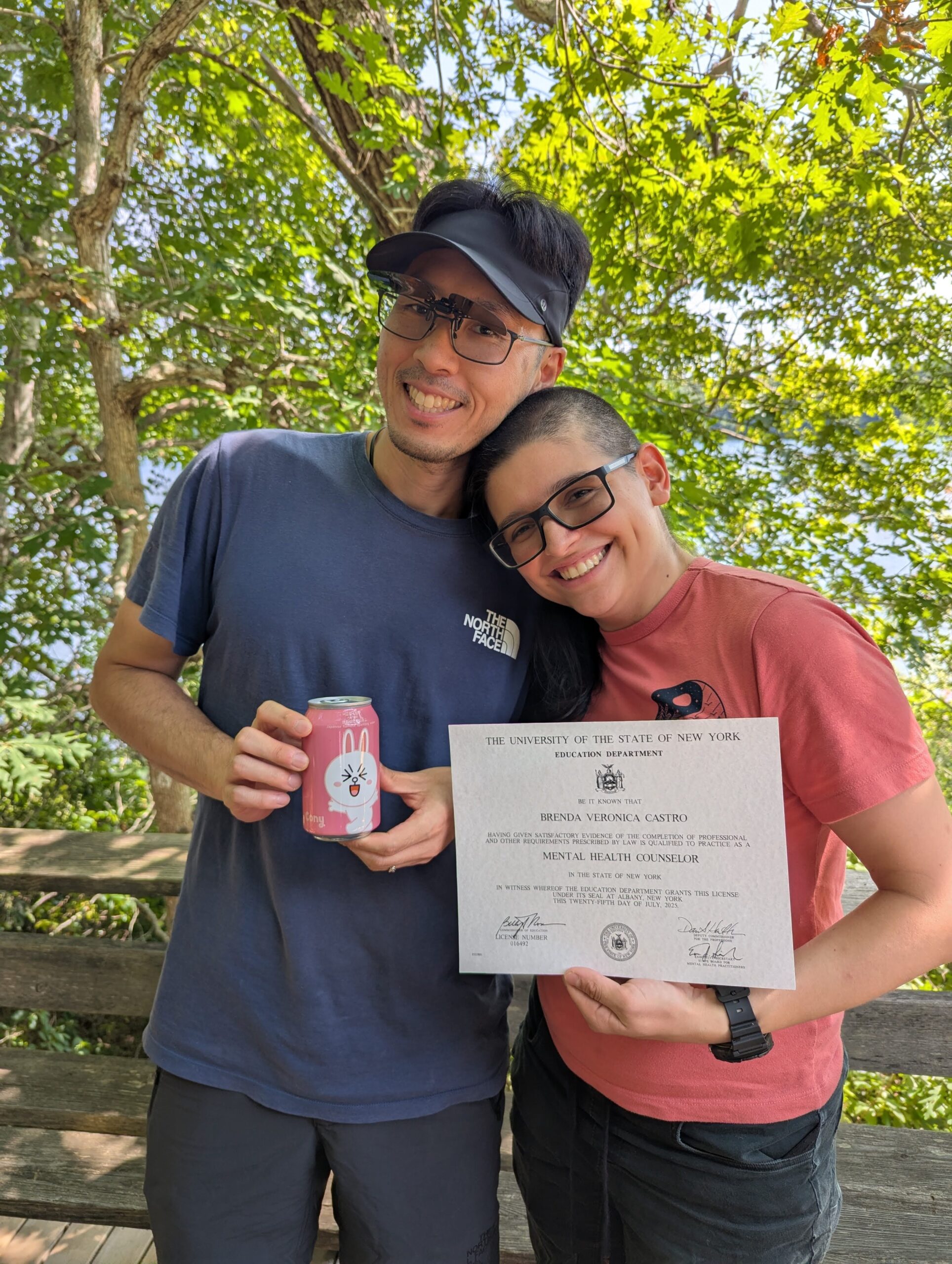 Brenda Castro is a Licensed Mental Health Counselor for New York State. They were licensed on July 25, 2025 whilst working at Pinewoods Dance Camp in Massachusetts and continuing to see patients via telehealth.