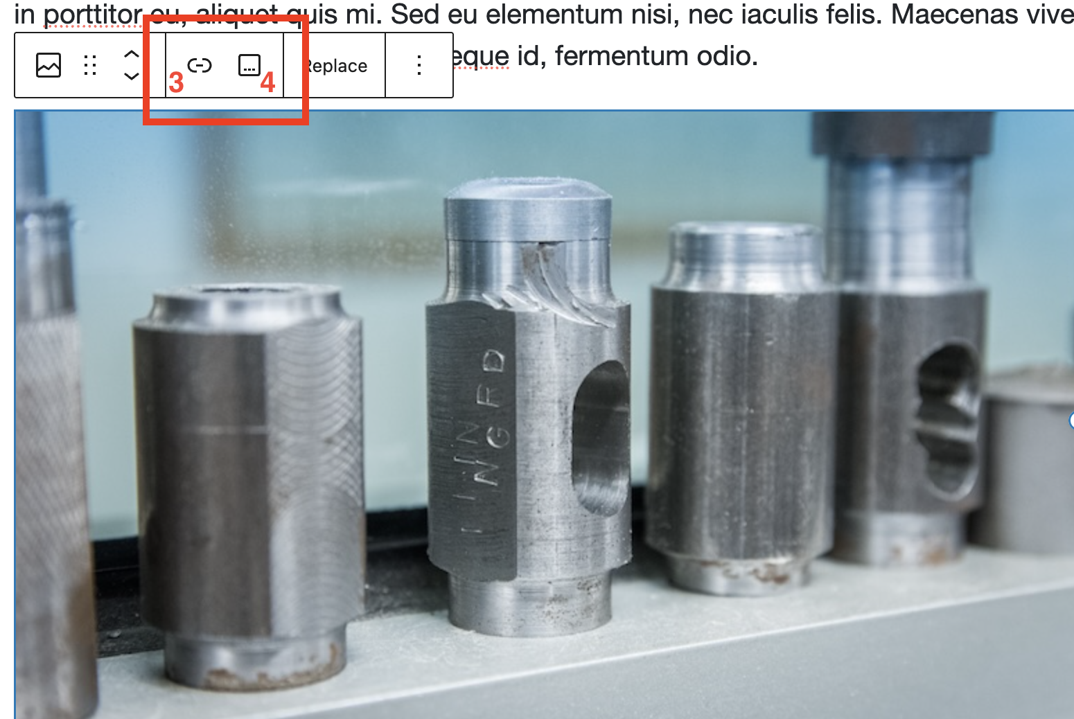 To add a visible label underneath an image, select the caption button. Text is entered underneath the image itself. Use the caption to add more information or context to an image.