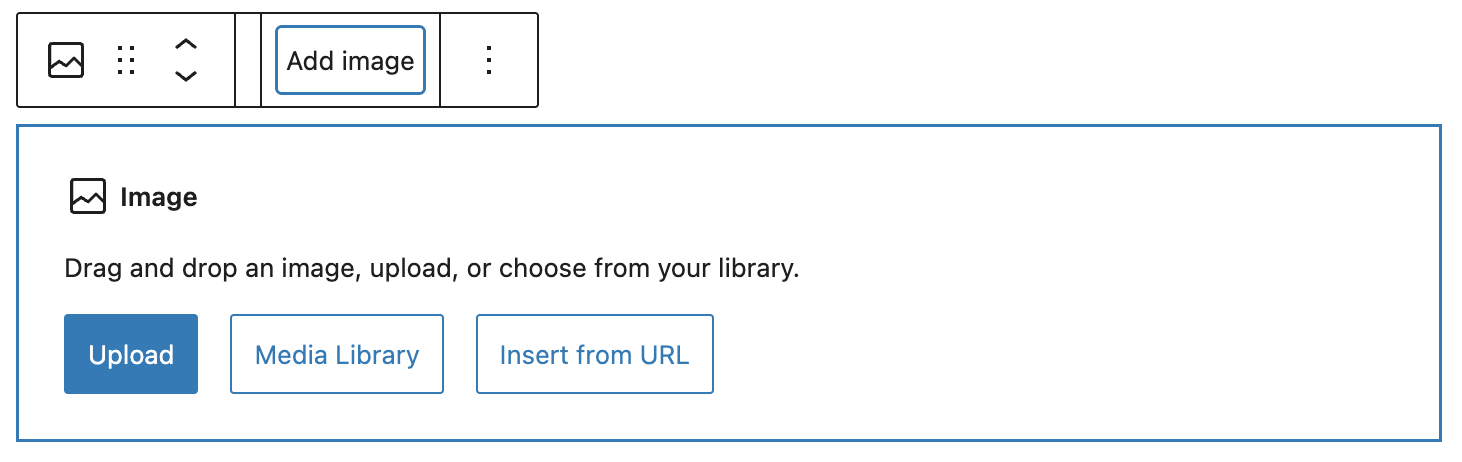 With the cursor in the block placeholder (where it says Type / to chose a block), type forward slash / and either choose image or start typing ‘image’ until the image option is visible for you to select.