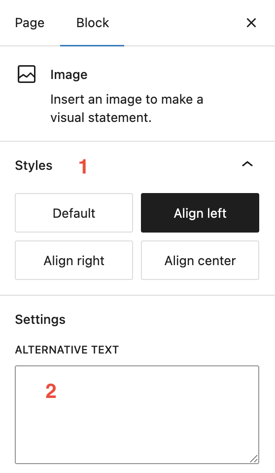 - Landscape images: as landscape images suit a full-width layout, choose Default or Align center and avoid Align left and Align right