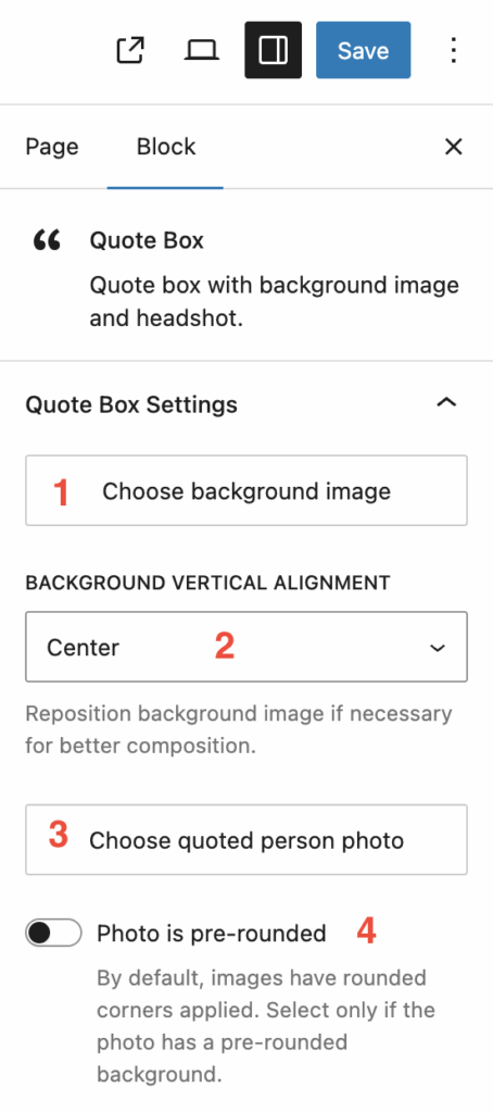 Configuring the Quote Box Block